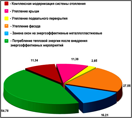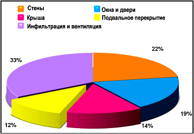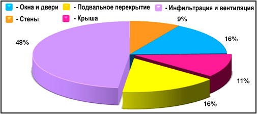 Рис. 3. Баланс потерь тепловой энергии в здании после проведения комплексной термомодернизации