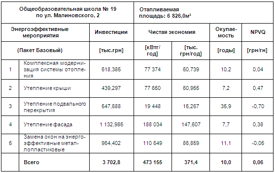 В ходе проведения энергетического аудита СОШ № 19 были предложены ряд мер по снижению потребностей в энергоресурсах на отопление.