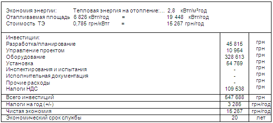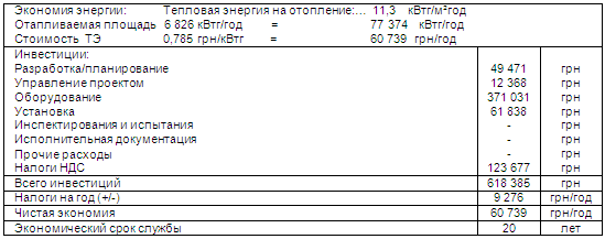 После внедрения мероприятий происходит повышение уровня потребления электроэнергии, что связано с восстановлением нормальной работы вентиляции, но значительное уменьшение потребления тепла от системы центрального отопления и электроэнергии (на отопление) компенсирует предыдущие расходы. Кроме того повышается климатический комфорт в помещениях.