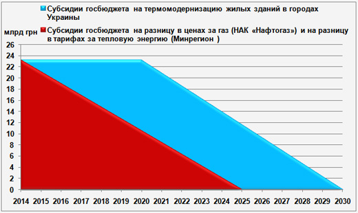 В результате предлагаемого изменения бюджетной политики Кабинета Министров Украины денежные средства (субсидии, направляемые НАК НАФТОГАЗУ и Минрегиону) в объёме до 23.199 миллиардов гривен ежегодно, 15 следующих лет, могли бы использоваться для софинансирования проектов термомодернизации жилых многоэтажных зданий в Украине.